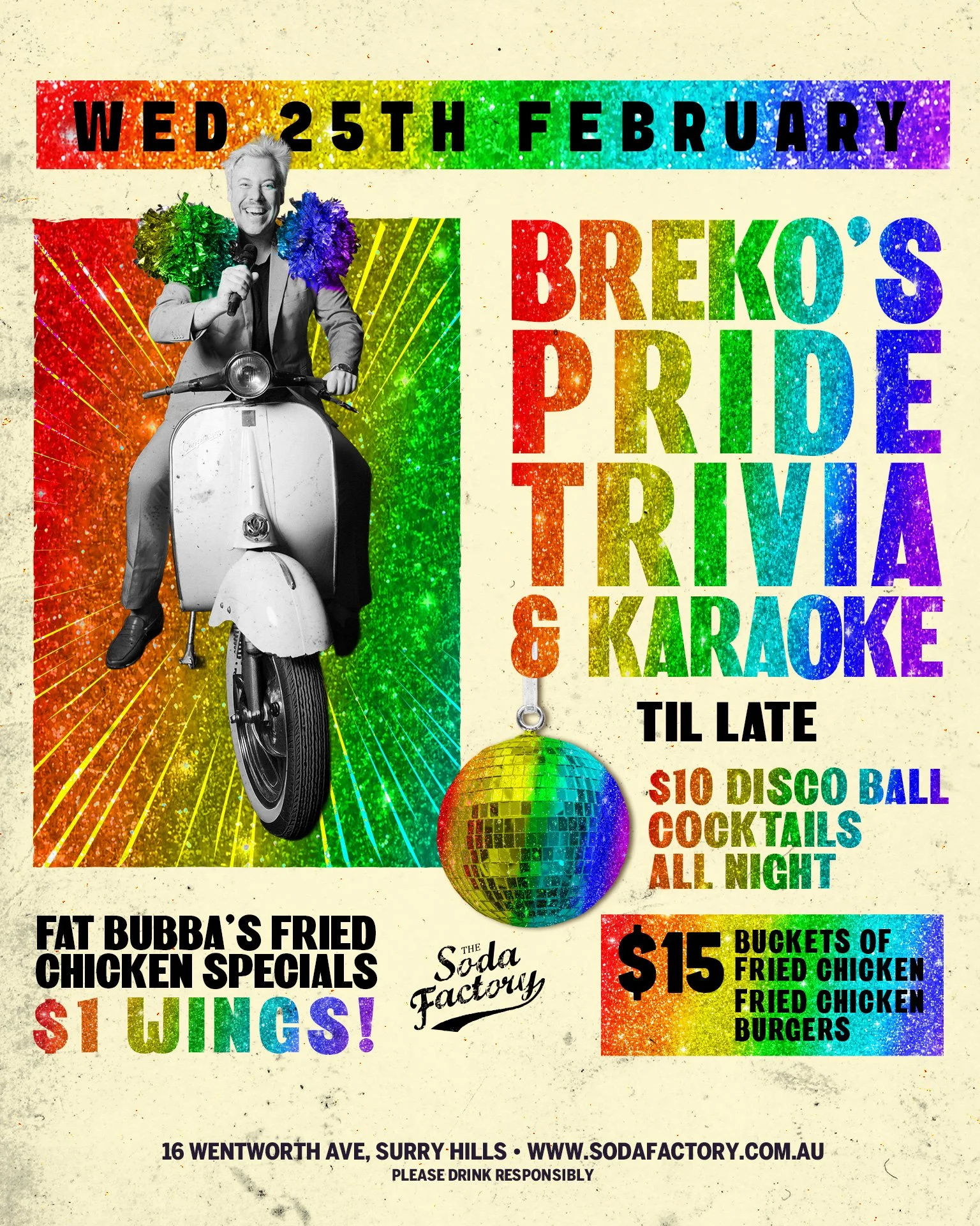 Get ready to spice up your midweek with Sydney's trivia icon, Jame Breko! Every Wednesday night at Soda Factory! This isn't your average trivia night! It's a game show style visual feast of questions from all genres mixed with interactive challenges that could turn the tables at any moment. Will you know the Blockbuster movie from it's famous song? Or will your team beat the competition in the Gangnam Style dance challenge?!